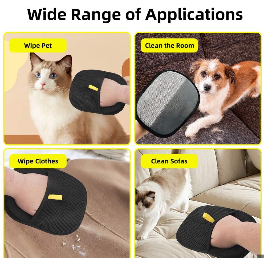 Absolutely. The glove has a dual-sided design: one side for grooming your pet and the other for removing hair from couches, carpets, beds, car seats, and clothing. It’s perfect for keeping both your petandyour home fur-free.