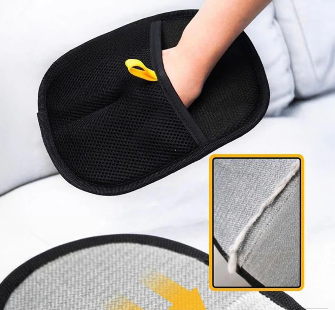 To clean furniture or clothes, simply swipe it over fabric surfaces to gather stray hairs. Once you’re done, peel the collected fur off the glove in one piece or rinse . For a deeper clean, toss the glove in the washing machine—it comes out fresh and ready to use again.